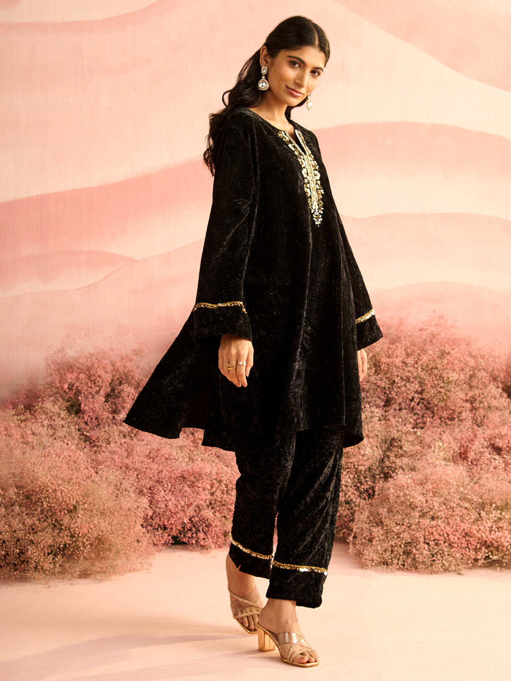 This elegant black radical pant is a perfect blend of comfort and festive elegance for evening celebrations. You can pair it up with our radical tunic.