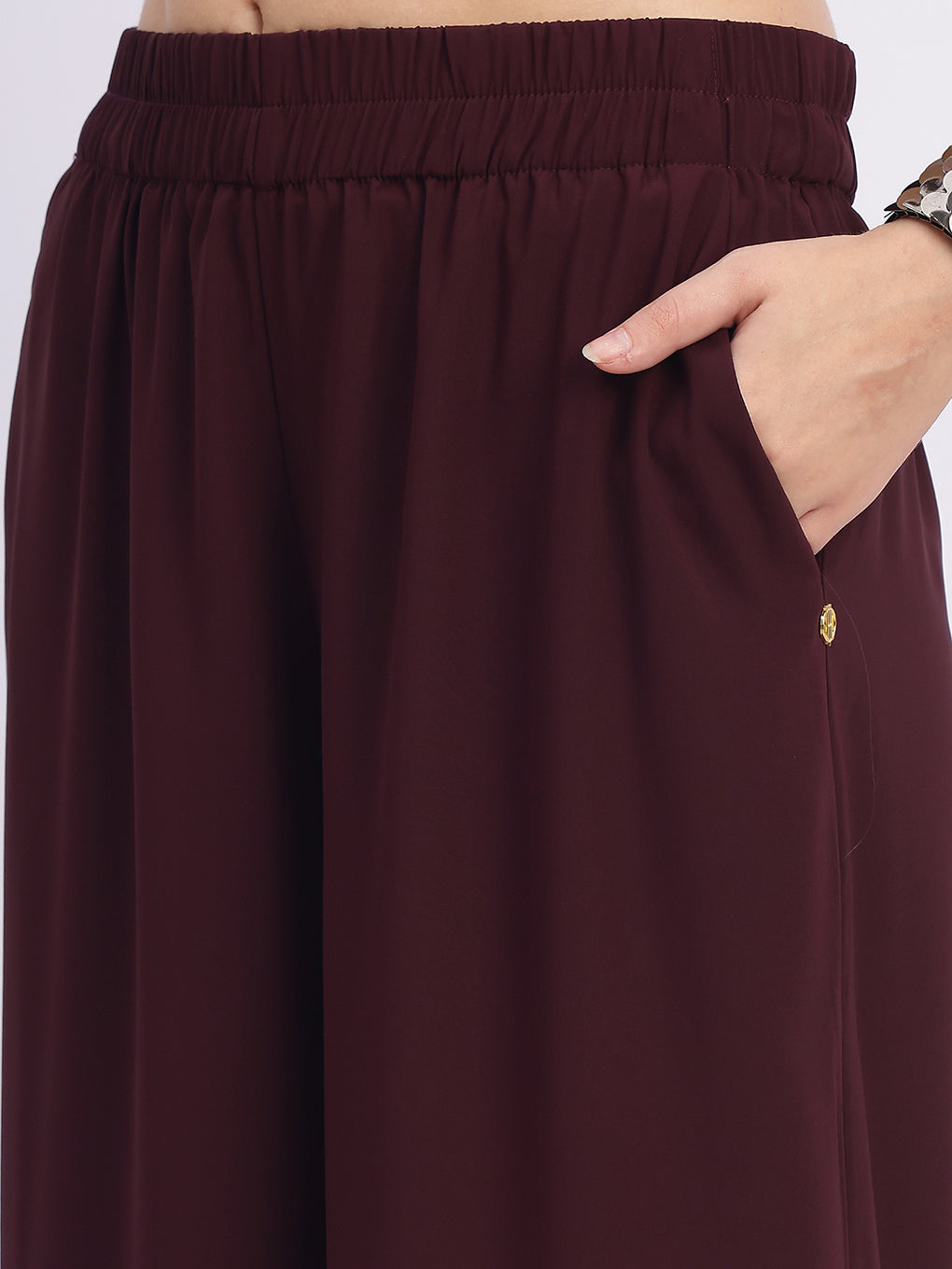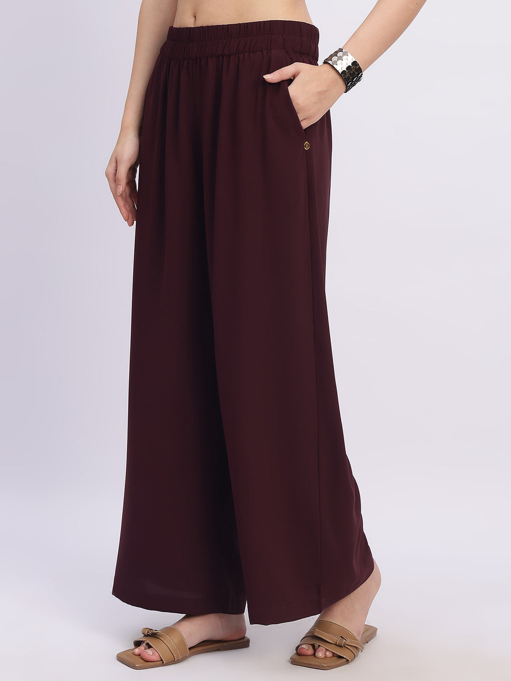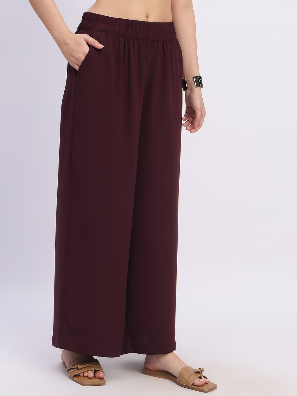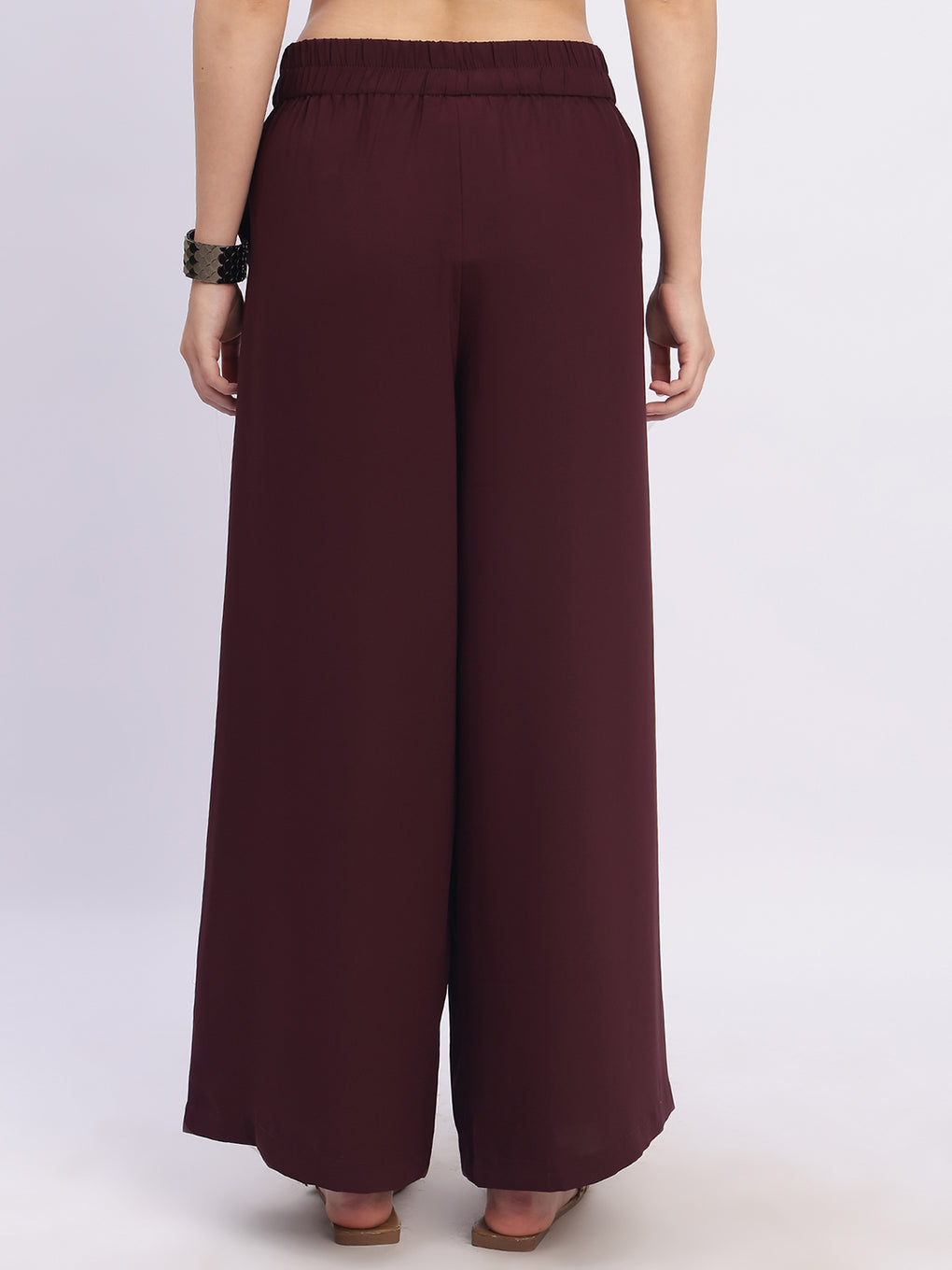 A modern classic crafted in a rich solid tone, these wide-leg pants feature a relaxed yet refined fit that moves beautifully. Designed to flatter and flow, they bring understated power to both statement tops and minimal layers.