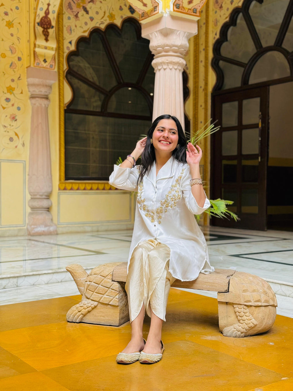 Feel the richness with this embellished shirt creating an illusionary bejewelled pattern.