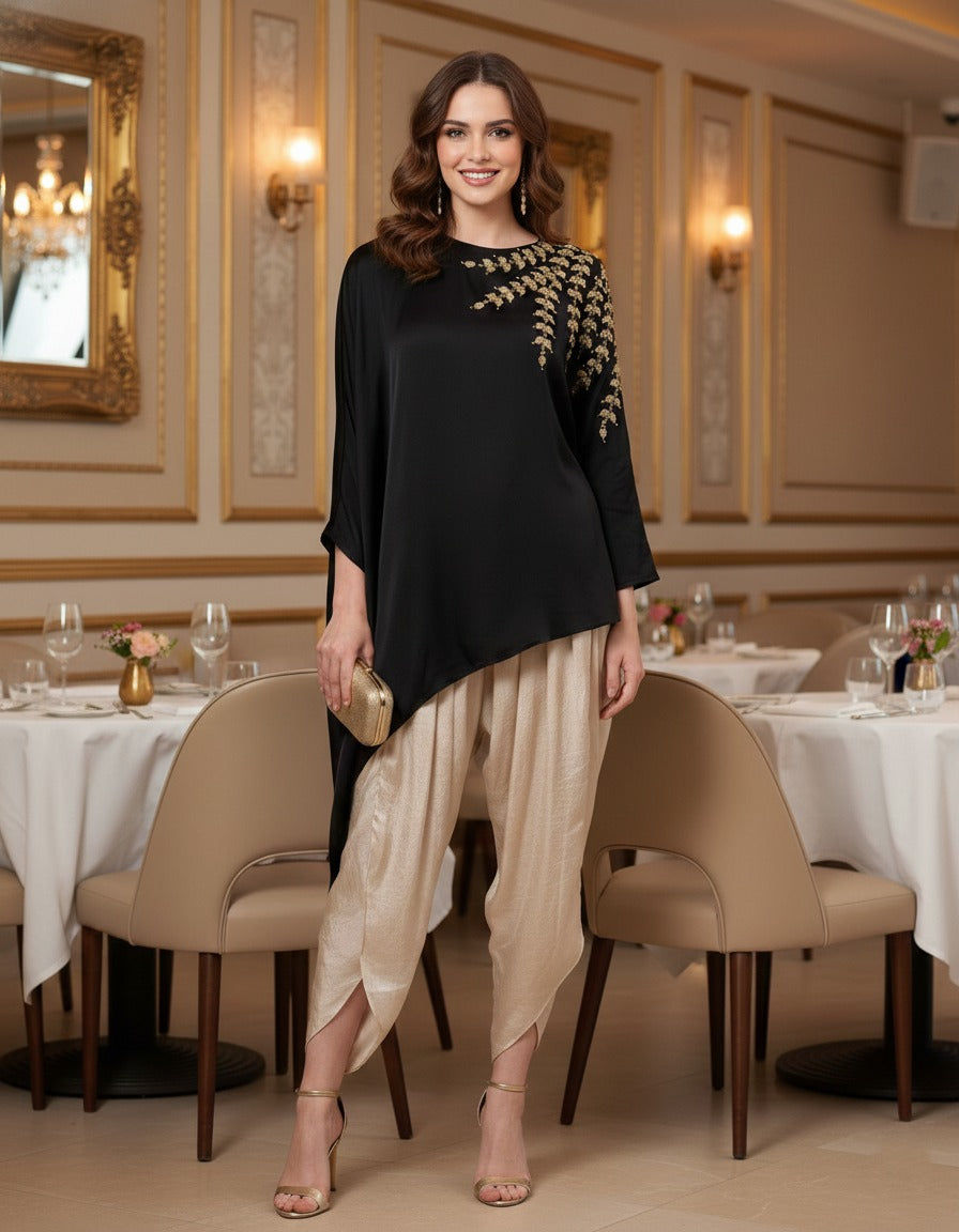This trendiest outfit from the house of chique. Beautifully designed for both casual look as well as a party wear.Make it a casual wear pairing our straight pants and party wear with our tulip pants.