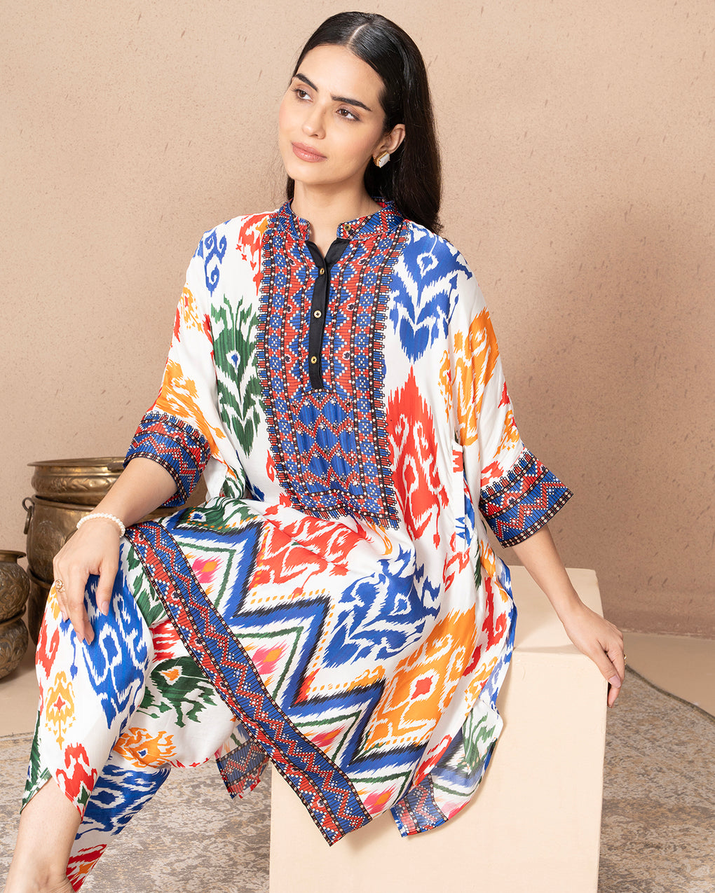 Trousers from the house of Chique. Designed for fashion-forward women, These bottoms will become one of your favourites this season. Club these with WHITE IKATAN GALE SHIRT and step out in a simple yet classy look.