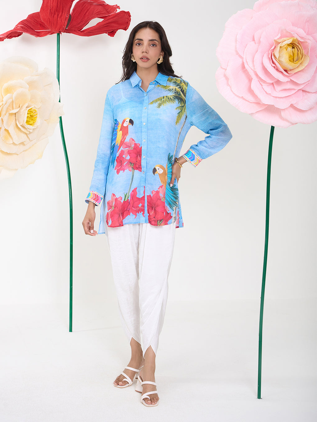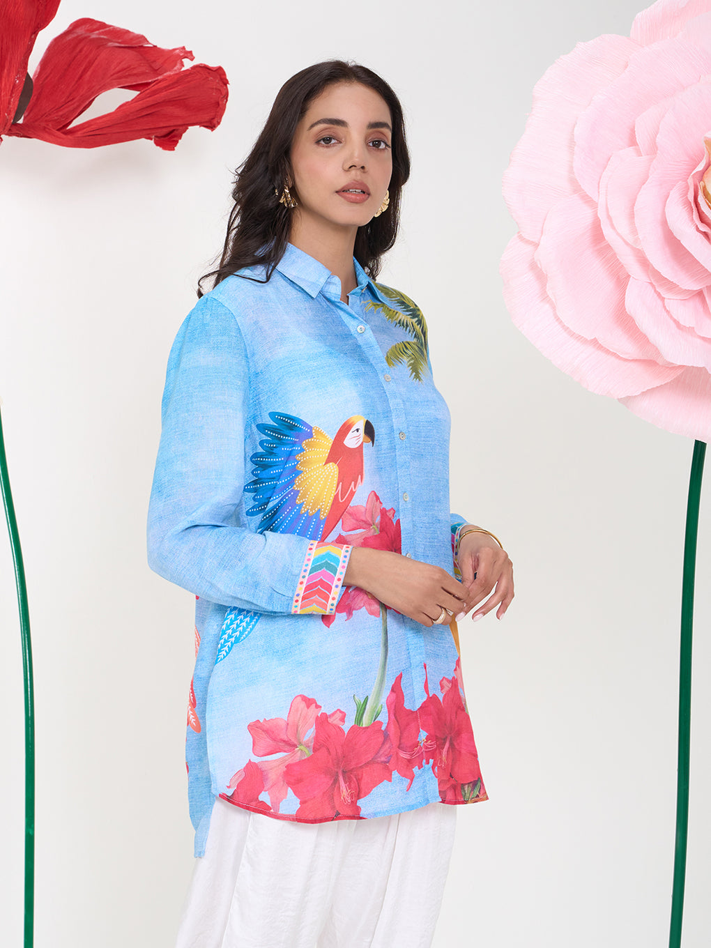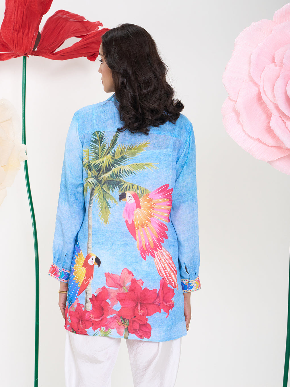 The Rufus Shirt is crafted in breathable linen and features a vibrant parrot and floral print on a blue base. Designed in a relaxed silhouette, it blends playful charm with effortless elegance. Perfect for warm days and standout casual looks.