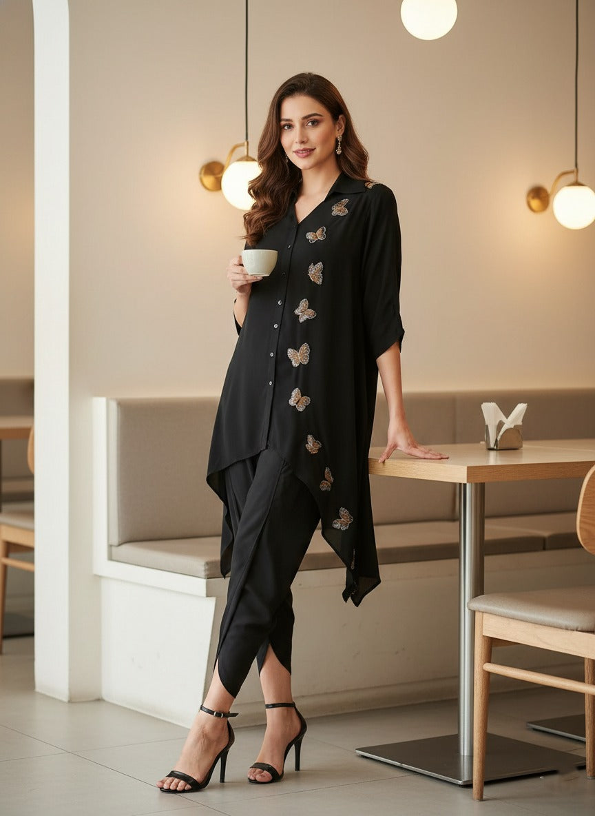 This rich outfit is like holding an ace of spades in your hand, Pair it up with the Chique tulip pants and you'll be a winner with ease.