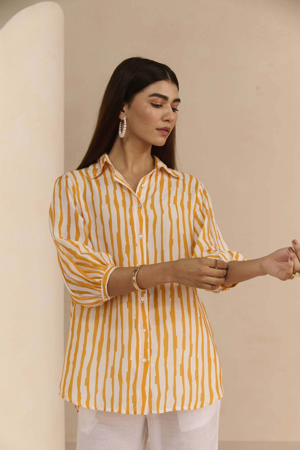 - Style Code: 2451 PNS_MUSTARD VEIN SHIRT