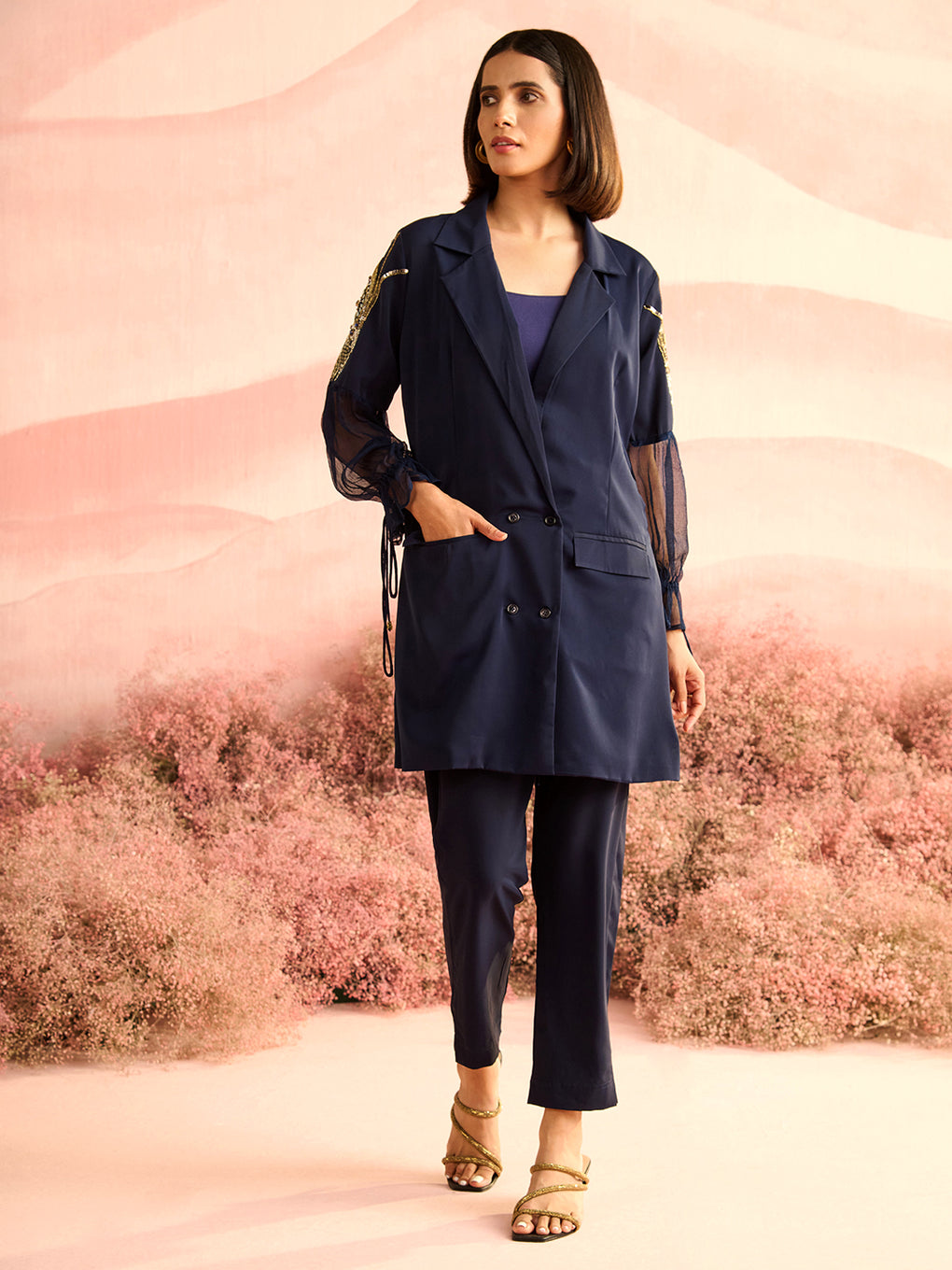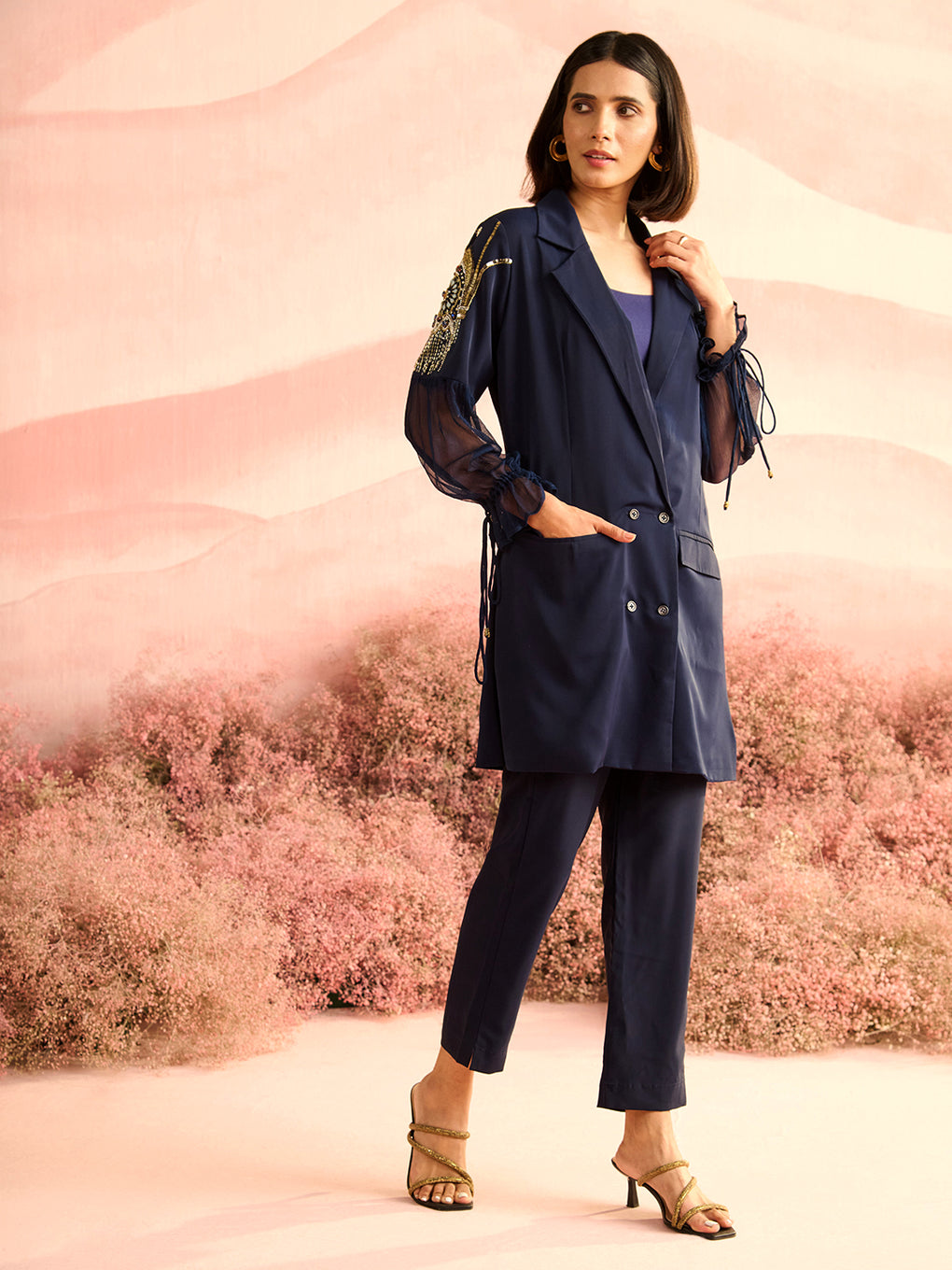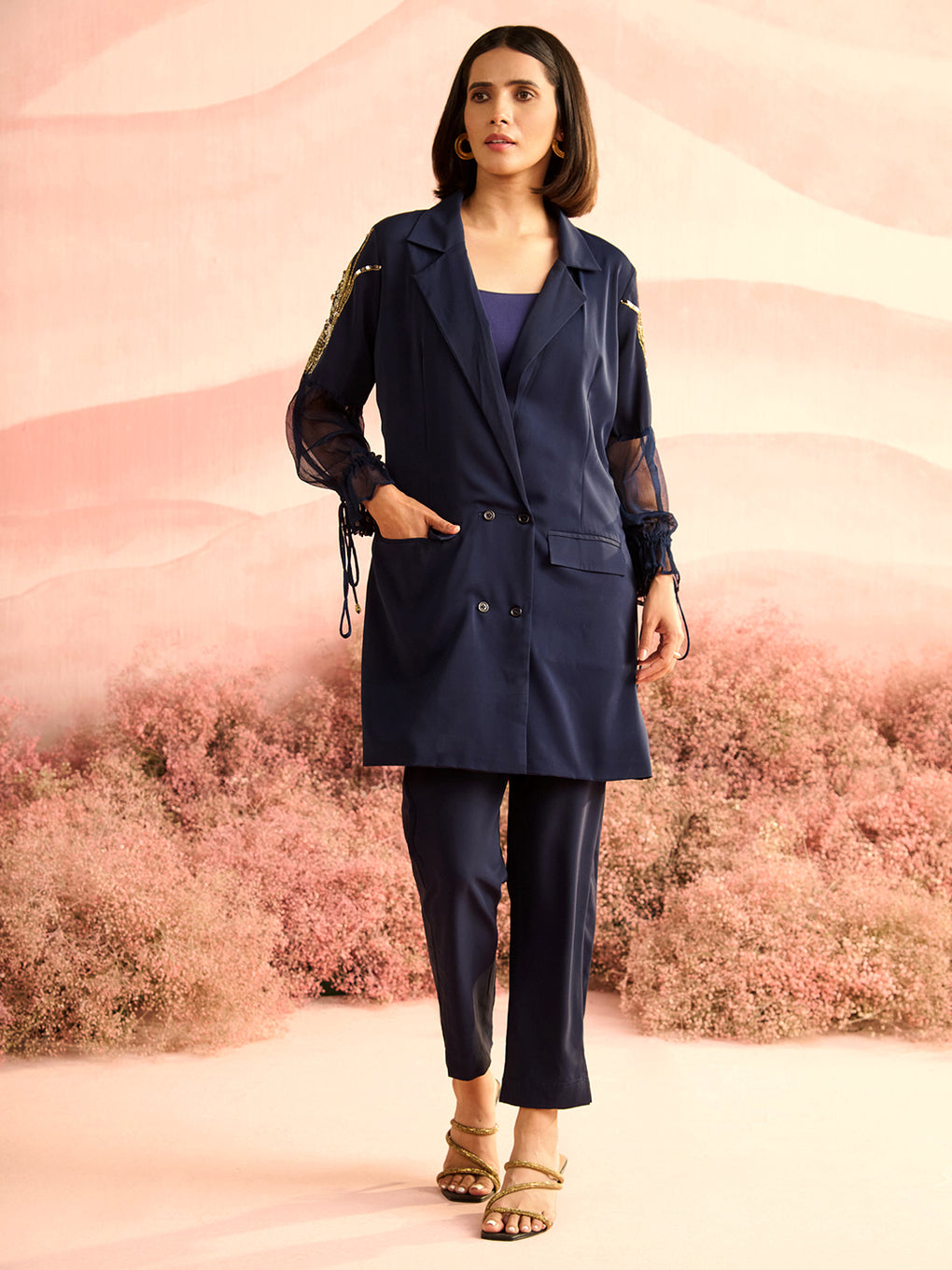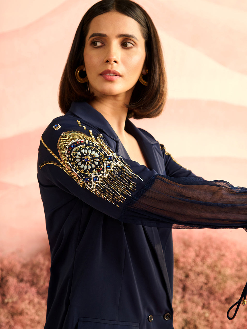 Glam up your wardrobe with this vibrant and effortlessly chic blazer that is a celebration in itself. Perfect for the upcoming parties, brunches and more. Pair up with matching pants for an eye-catching look.
