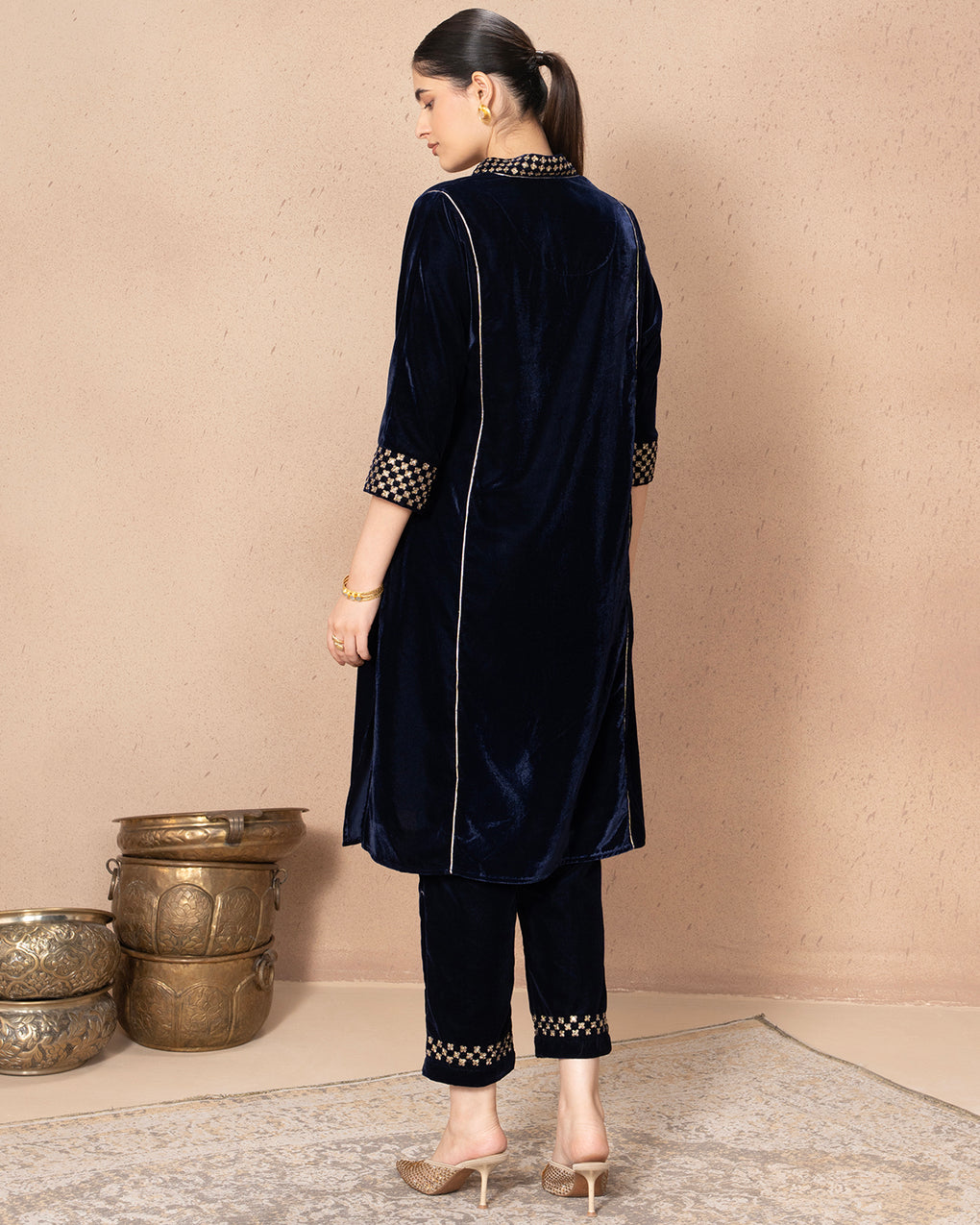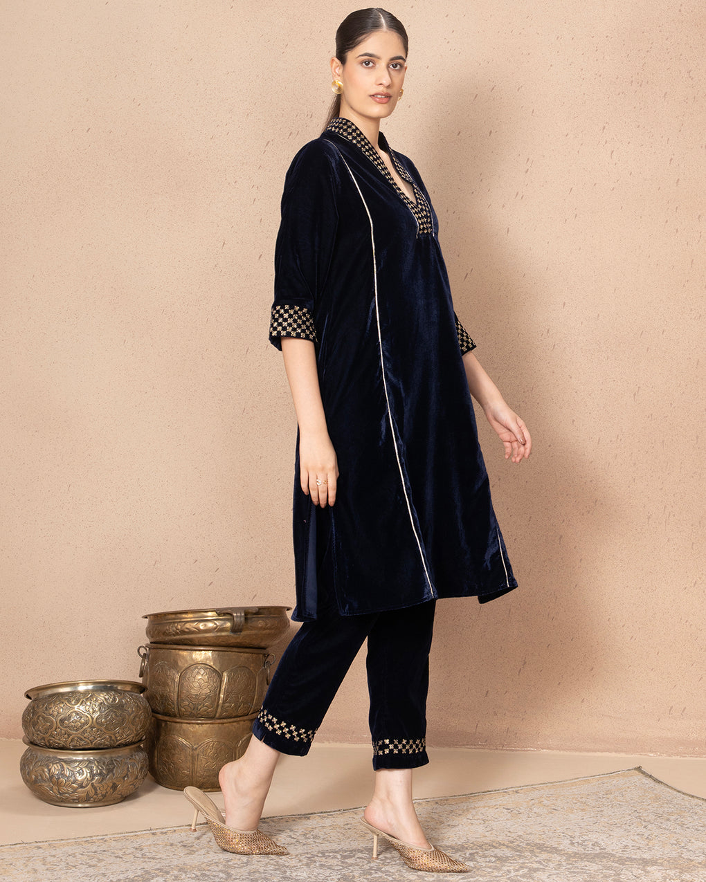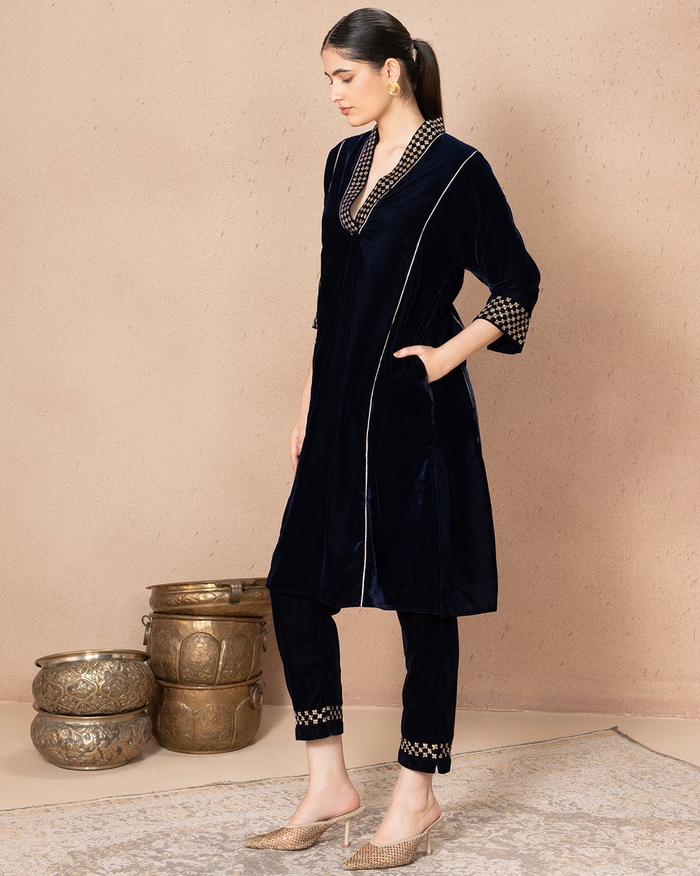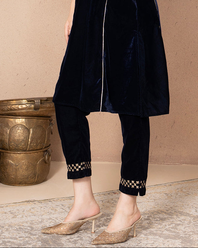 This elegant Navy Kali Trousers are a perfect blend of comfort and festive elegance for evening celebrations. You can pair it up with our navy Kali Tunic.
