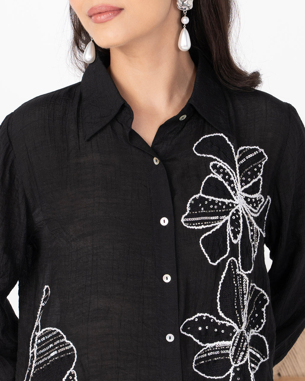 - Style Code: 133SBSY_BLACK FLORET CRYSTALLINE SHIRT