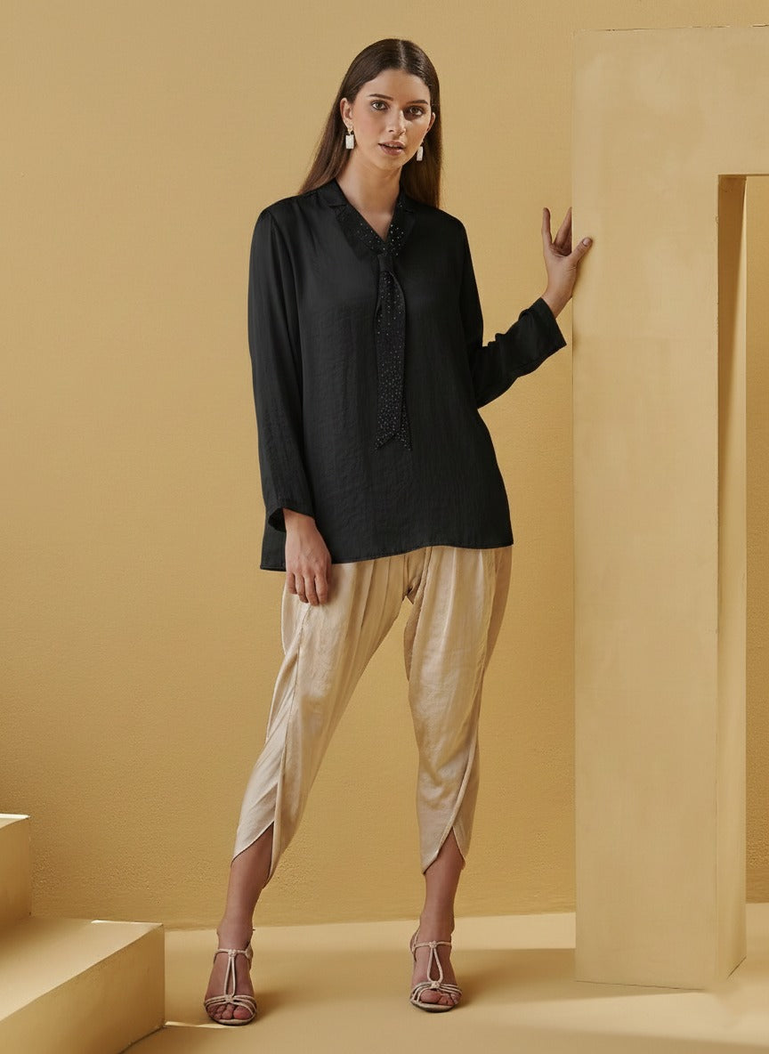 An unseen outfit adding the right amount of glamour to your work place or any party place. Compliment with a pair of straight pants to complete the look.