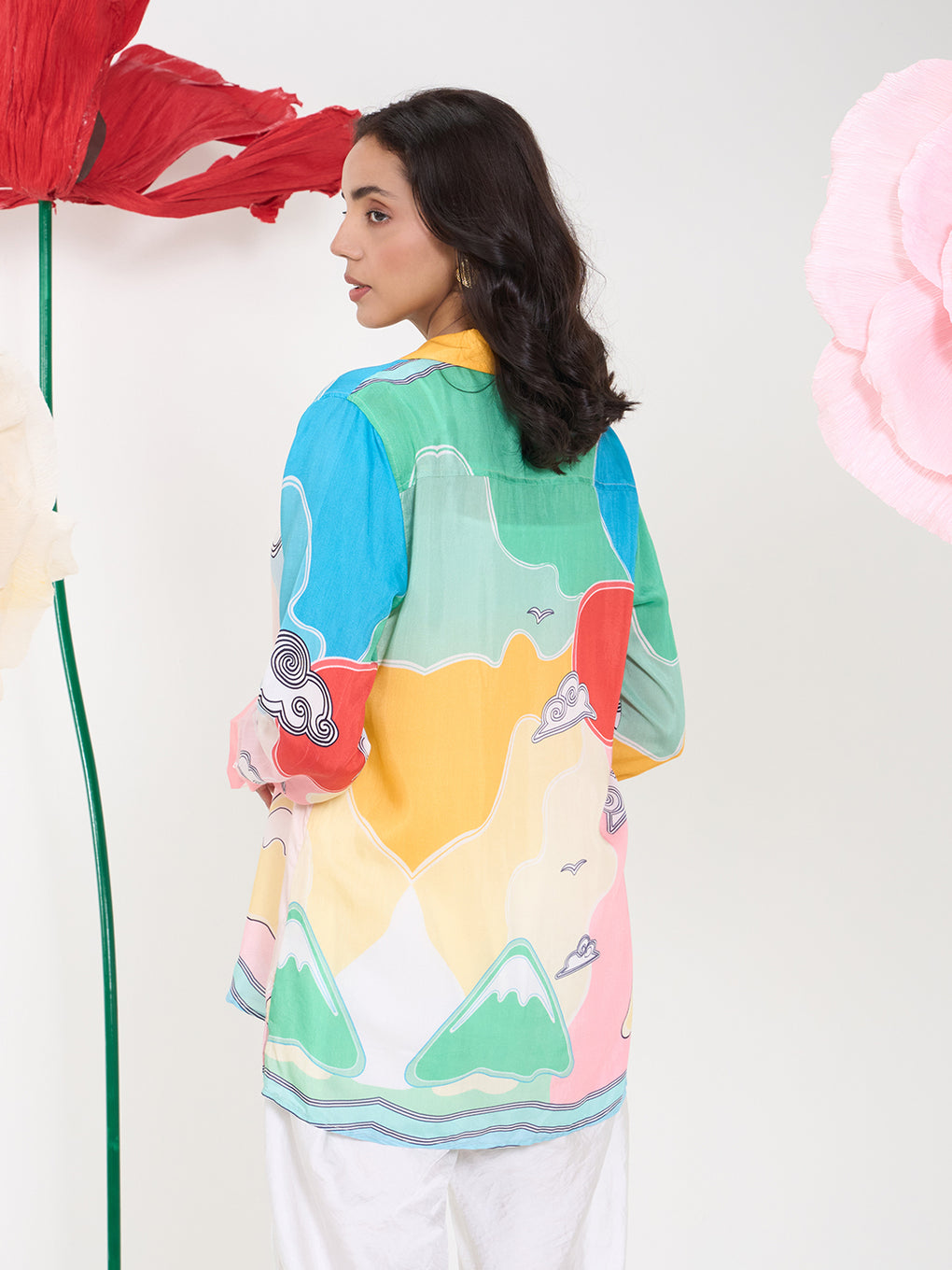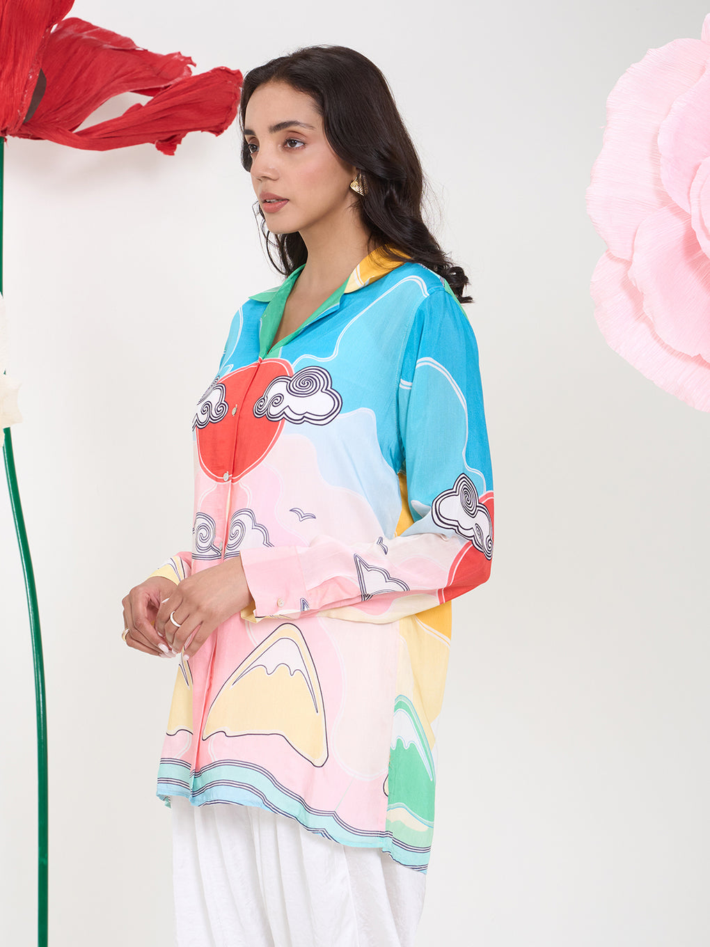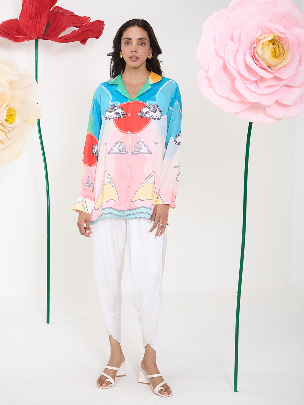 Focussing on the placement of this print , makes it an attractive one. Compliment with a pair straight pants available in a variety of colours to choose from the brand of CHIQUE.