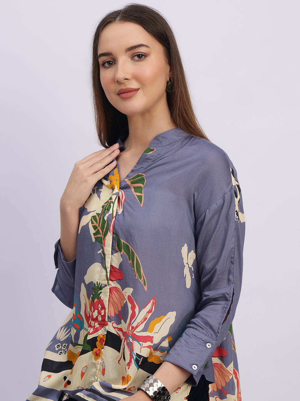 Elevate your casual look with our contemporary printed shirt which blends bold patterns with effortless charm. Team up with a pair of straight pants to complete the look.