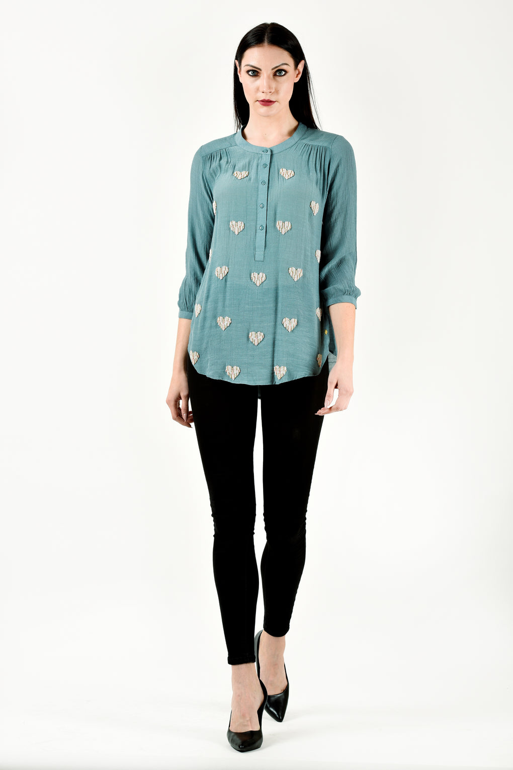 - Style Code: 580SBSY_ Solid Turquoise Heartbeat Shirt